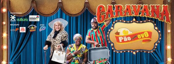Depois de uma nova temporada de casa cheia no Teatro Arthur Azevedo (Na Rua do Sol), os atores César Boaes, Adeilson Santos e Charles Júnior levarão a “Caravana Pão com Ovo” para o Viva Anjo da Guarda, hoje, às 18h. O espetáculo, já visto por milhares de pessoas no Maranhão e em outras cidades do Brasil, será apresentado gratuitamente via Lei Estadual de Incentivo à Cultura.