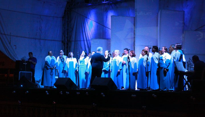 Segunda etapaSerá apresentada a peça latina “Missa Crioulla”, do compositor argentino Ariel Ramires. O solista será Ronaldo Ribeiro, com regência de Fernando Mouchrek. Nesta segunda parte, além de instrumentos andinos, serão utilizados instrumentos brasileiros como viola caipira e cavaquinho, entre outros. Na percussão latina estarão Arlindo Carvalho e Fleming. Nas cordas, Jorge Luiz e Tiago e ao piano, Angélica Marques. O espetáculo, no total, envolverá 16 músicos e quase 60 cantores.