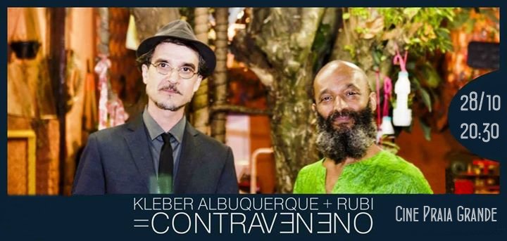 Evento: Show “Contraveneno - Canções para desenvenenar corações em tempos Tóxicos” com Cantores Kleber Albuquerque e RubiDia: Amanhã (28), às 20h30Local: Cine Praia Grande – Centro HistóricoIngressos: R$ 10,00